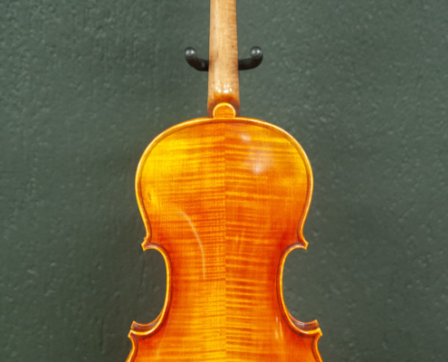 The instruments are antiqued and do not look like student instruments. The sound is high quality owing to the quality of the wood used in their construction. They are very well made to Stradivari and Guarneri patterns, in outline and arching style.